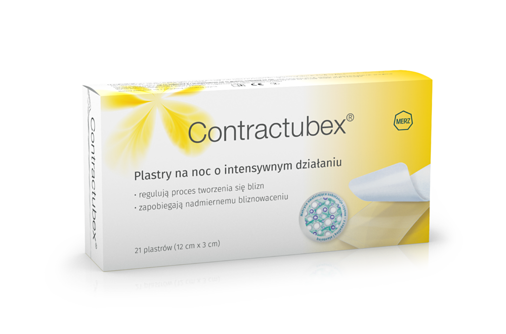Contarctubex® plaster stosuje się nocą gdzie intensywne działanie aktywuje się podczas snu. Preparat wykorzystuje efekt okluzji, który zapewnia odpowiednią wilgotność tkanki blizny. Przez cały czas kontaktu plastra ze skórą stopniowo uwalniają się substancje czynne zawarte w preparacie. Plaster można przycinać i dopasowywać do kształtu rany. Chroni też wrażliwe miejsce przed urazami i otarciami przez pościel czy odzież.
